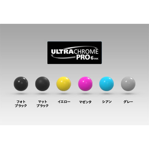 エプソンの純正インク「UltraChrome PRO 6インク」は全色顔料インク。水濡れや色あせに強く、ポスター用途に安心してお使いいただけます。