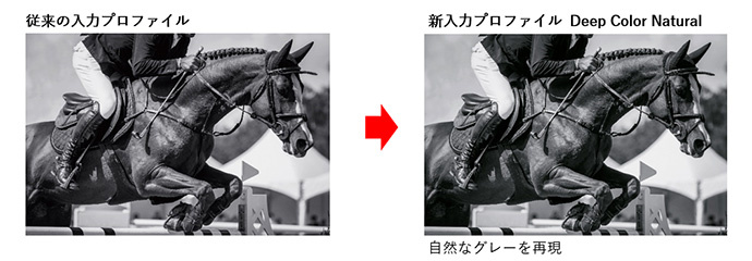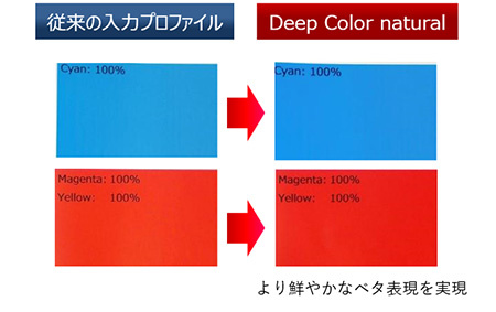 新入力プロファイル「Deep Color Natural」は、サイングラフィックス業界向けに扱いやすいプロファイルを追求しました。屋外・屋内サインで目を引く鮮やかなベタや、深みのある赤、ニュートラルグレー、自然でなめらかな肌色などを表現します。